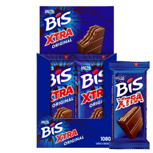 Bis já é bom, com chocolate extra é melhor ainda! Bis Xtra ao leite é a combinação perfeita do wafer crocante coberto com o delicioso chocolate ao leite em uma versão com ainda mais chocolate. Com 45g é o snack ideal para ter na mochila, na despensa de casa ou na gaveta do escritório para quando bate aquele descontrole por doce!