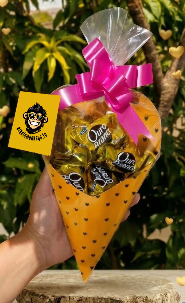 Buquê cone bombom ouro branco