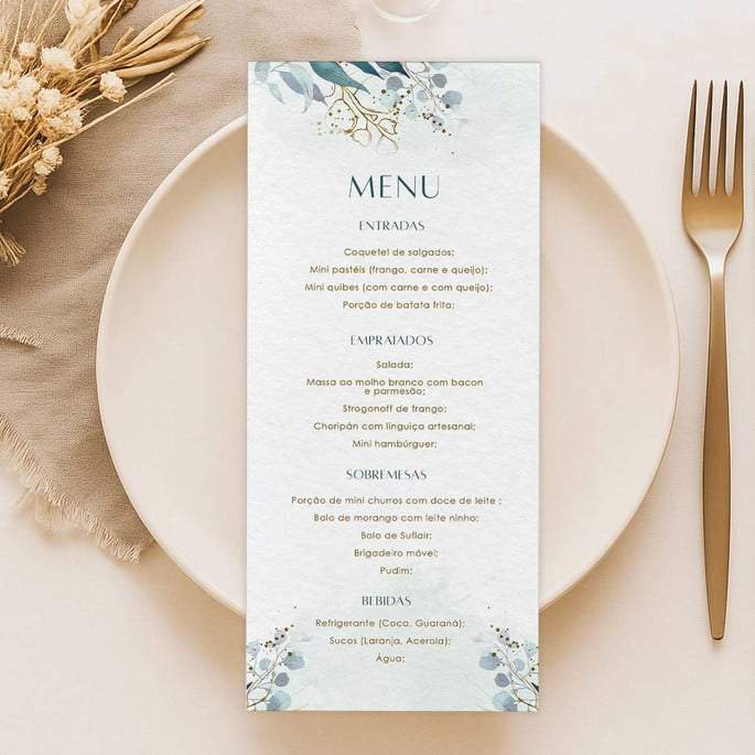 Cardápio Menu Decoração para Mesa Minimalista 9x20cm